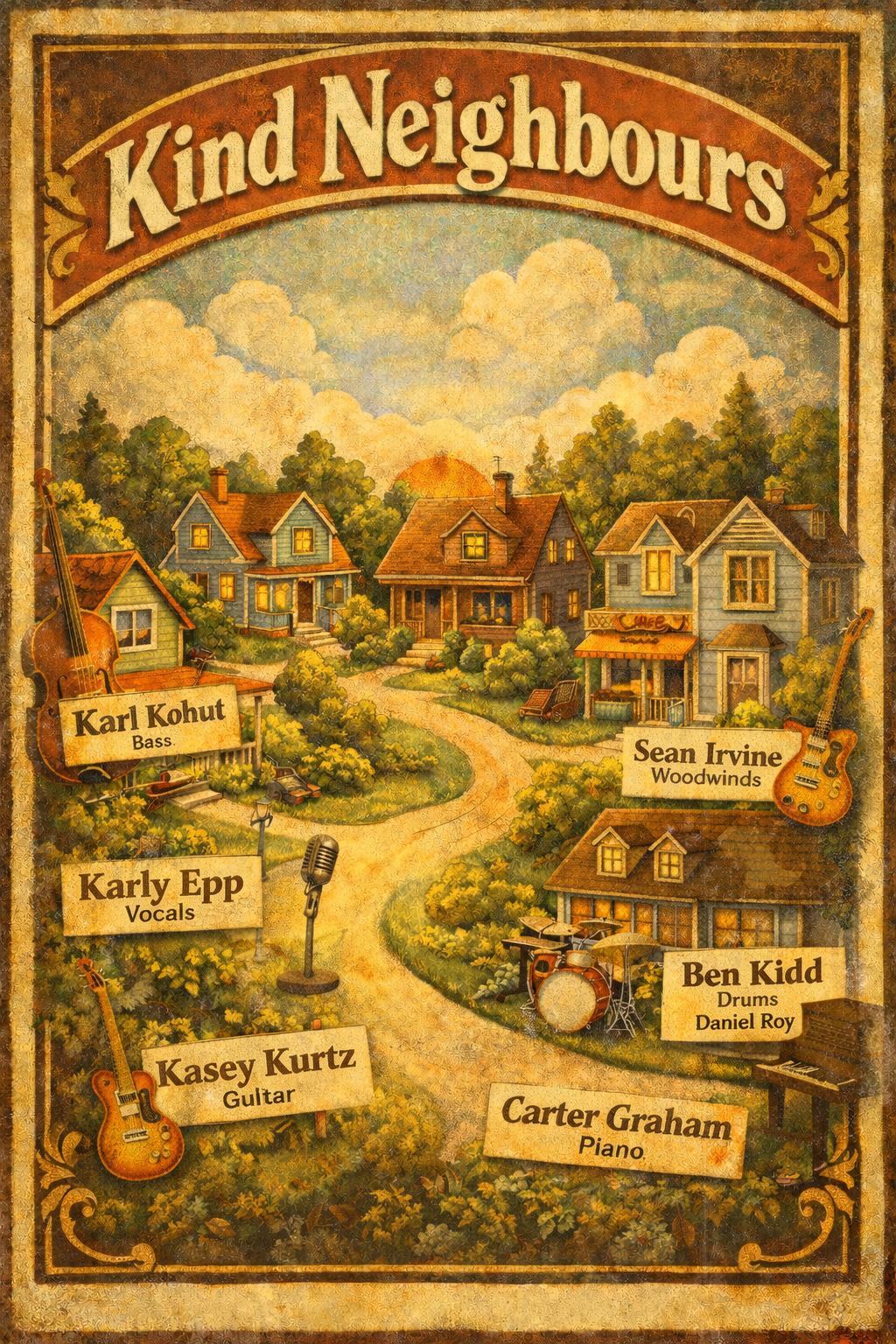 In its purest form, Kind Neighbours aims to blend the traditional singer/songwriter genre with the linguistic nuances of jazz.